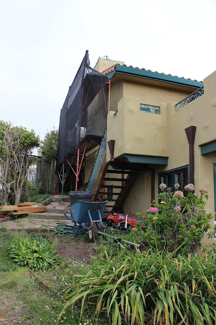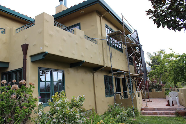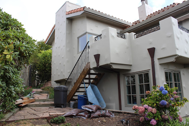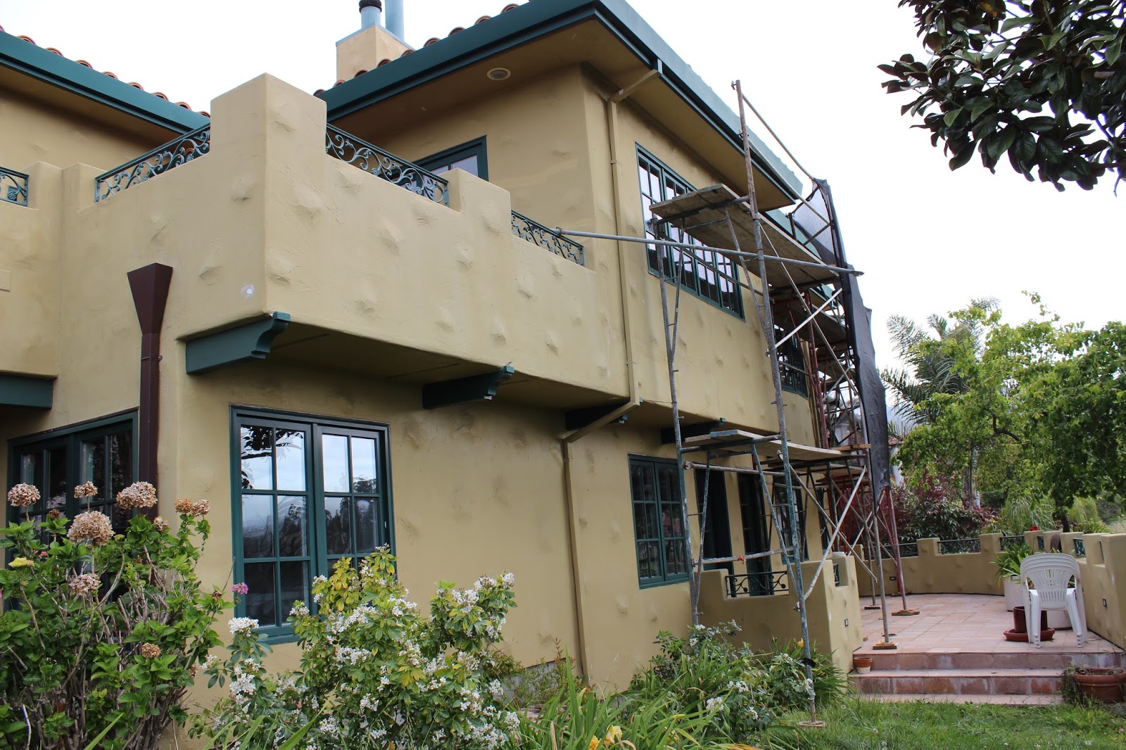 I realize that I am completely irresponsible and didn’t take full on “Before” shots of the back and side of the house before exterior paint got started, doh! I’ll do those shots first (and save the front for the end 🙂 hehehe), so please excuse the scaffolding in the before shots
