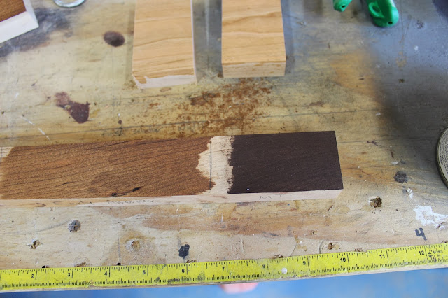 We also tested to see if we wanted to use the pre-conditioner or not, so we used a piece of scrap wood and pre-conditioned half of it and then tested both colors