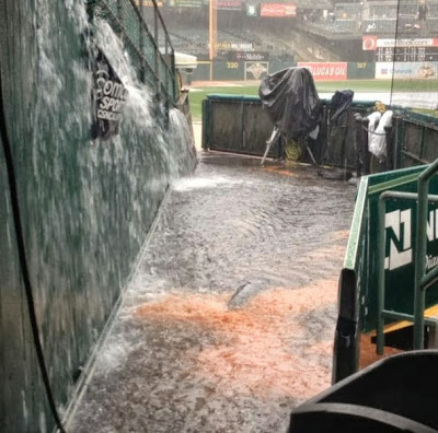 About 2 weeks ago we got late summer rain storm. I was at work at the A’s and had a wonderful 2 hour rain delay and Chris frustratingly texted me, “We need to fix garage drainage next chance we get.” Our favorite puddle