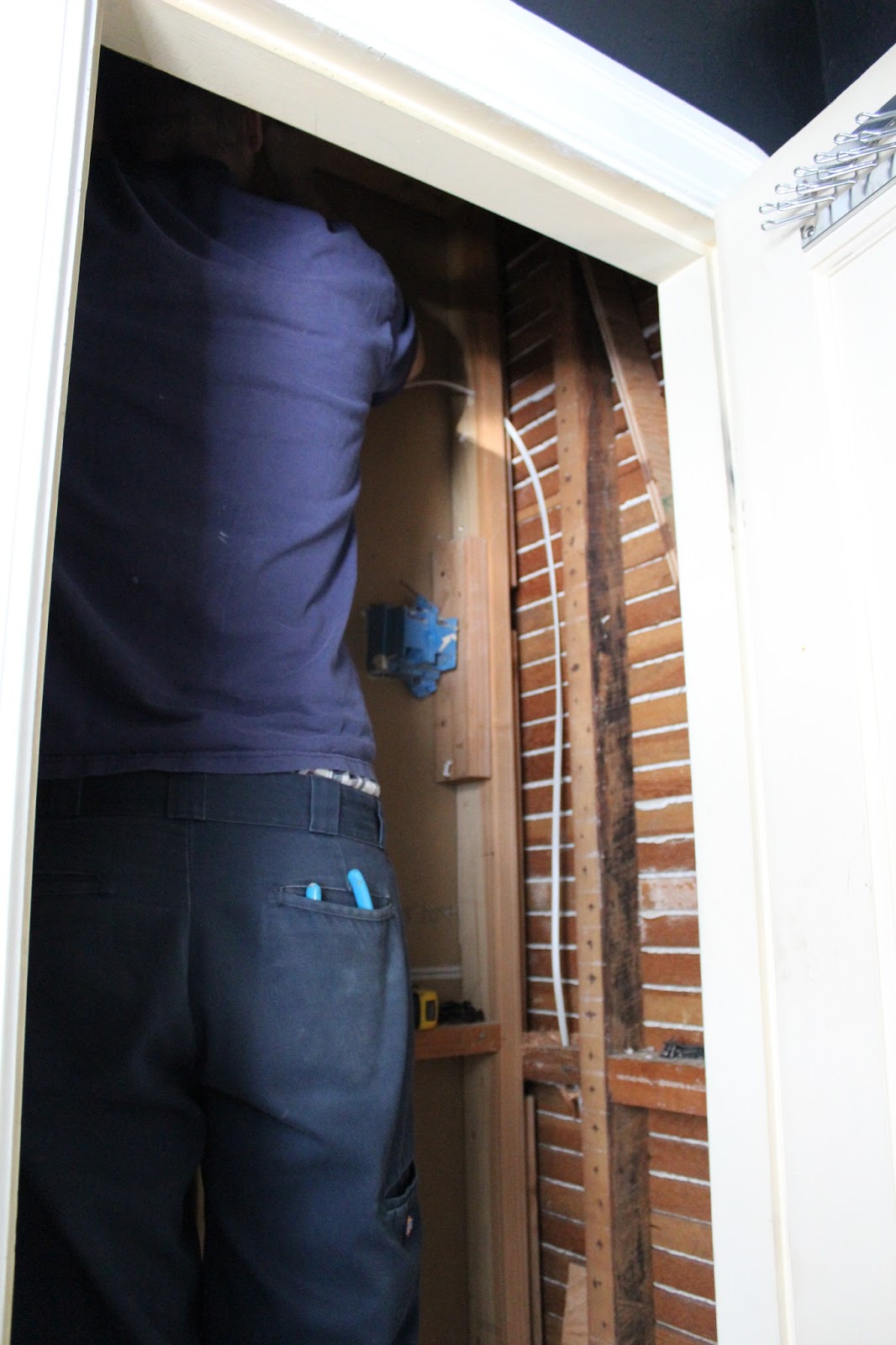 In addition, it’s been on our to do list to install an outlet in the hallway, so we figured it would be easier to do that now while the wall is open